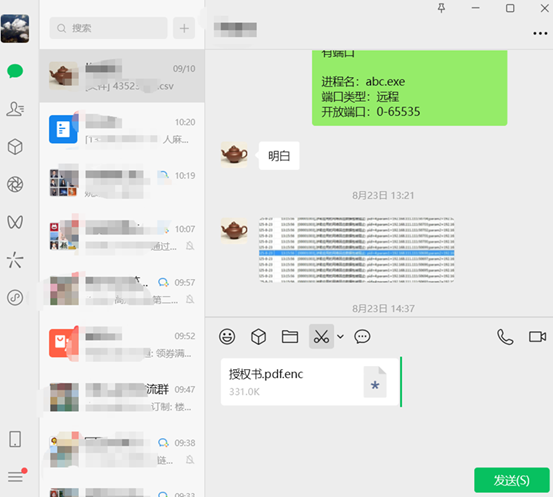 secWall加密环境中,本地加密文件是不能进入QQ、微信这类隔离应用中的,无法通过QQ、微信或Outlook邮件客户端直接发送本地加密文件。常规用法是先对本地加密打包成MMP文件,然后发送MMP文件。这会增加发送文件的操作步骤。本文介绍secWall发送加密文件自动化打包的方法,可以直接把加密文件拖放到QQ、微信(包括企业微信)、钉钉、飞秋等常见P2P传输的的软件或Outlook、Foxmail等邮件软件中传输。 一、 配置启用自动打包的应用